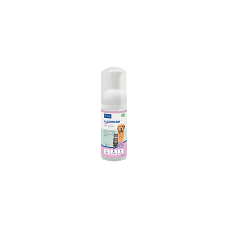 AllerdermTM Espuma Limpiadora a base de agua micelar que no necesita aclarado. Se trata de un producto indicado tanto para perros como para gatos, especialmente adecuado para aquellos casos en los que se requiera limpiar la piel y el pelo del animal de forma rápida, así como para eliminar la suciedad en zonas específicas. Gracias a su tecnología inteligente antiolor consigue neutralizar los olores desagradables. Contiene ingredientes que ayudan a conservar la barrera de la piel y respetan su equilibrio microbiano. Dispone de una bomba dosificadora silenciosa que permite una fácil aplicación en animales miedosos y sensibles a los ruidos.