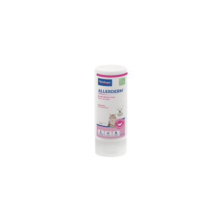 Champú suave de avena natural, sin detergentes, con pH neutro y aroma a manzana, diseñado para un uso frecuente con el fin de optimizar el estado de la piel y el pelo de perros y gatos de todas las edades, con piel sensible.