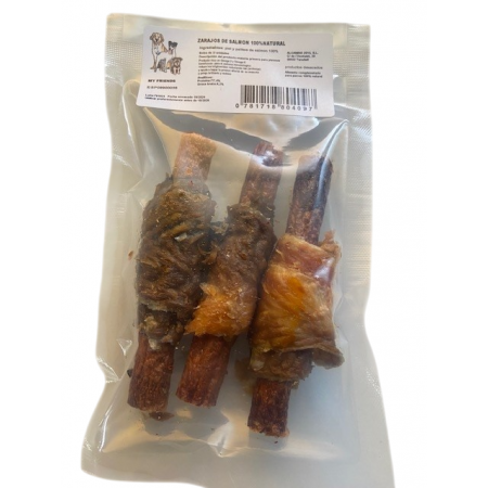 Zarajos de piel y salmón para tu perro, tiernos, naturales y super sanos.